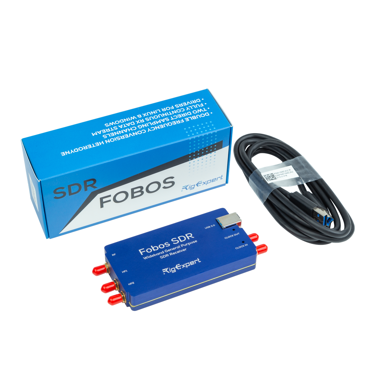 Fobos SDR – це високопродуктивний програмно-визначений радіоприймач (SDR), що працює в частотному діапазоні 0,1–6000 МГц. Завдяки 14-бітному АЦП, ширині смуги до 50 МГц та USB 3.0, пристрій забезпечує високу точність прийому сигналів та гнучкість у використанні.