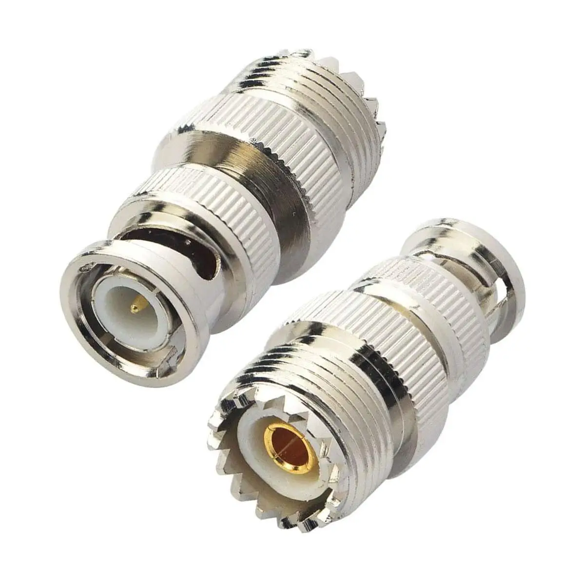 Перехідник UHF female – BNC male — коаксіальний ВЧ-адаптер для підключення обладнання з різними стандартами роз’ємів. Застосовується в антенних системах, радіостанціях, вимірювальній та телекомунікаційній апаратурі. Забезпечує стабільний електричний контакт і мінімальні втрати сигналу. Міцний металевий корпус із захисним покриттям гарантує довговічність і надійність з’єднання. Підтримує хвильовий опір 50 Ом.