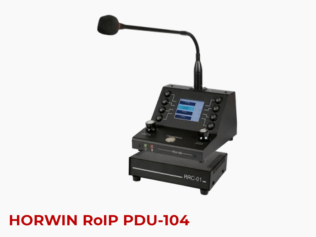 RoIP пульт дистанційного керування радіостанціями точка-точка, точка-багатоточка або багатоточка-точка по IP-мережі. Диспетчерська система з використанням PDU-104 може бути розширена до 6-ти пультів (або більше за спеціального замовлення).