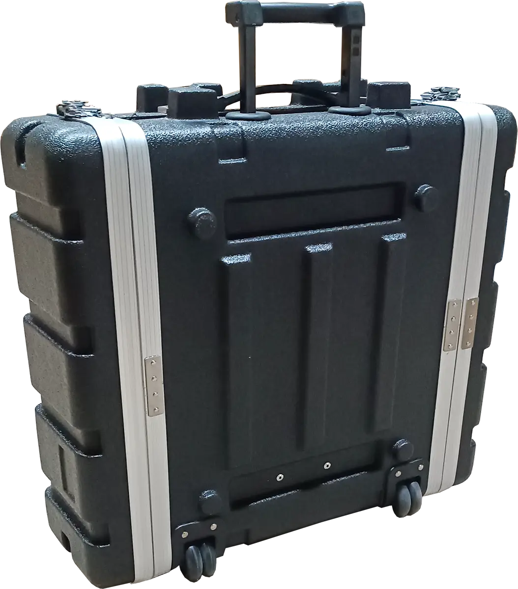 Рейковий кейс ABL 3U на колесах з висувною ручкою для 19″ обладнання Призначення: Кейс ABL 3U призначений для безпечного транспортування та монтажу професійного аудіо-, відео-, ІТ- та телекомунікаційного обладнання формату 19″. Завдяки колесам і висувній ручці ідеально підходить для мобільного використання — концерти, виїзні заходи, студії, польові умови. Характеристики: Параметр Значення Формат 3U Матеріал ABS-пластик + алюмінієві профілі Колеса 2 або 4 поворотні, з фіксатором Ручка Висувна телескопічна Замки Металеві типу “метелик” Ручки Вбудовані бокові Комплектація Сталеві рейки, гвинти М5, ущільнення Переваги: Зручне транспортування завдяки колесам і ручці Захист від пилу, вологи, ударів Герметичні ущільнення кришок Надійна конструкція для монтажу 19″ обладнання Можливість стекування з іншими кейсами