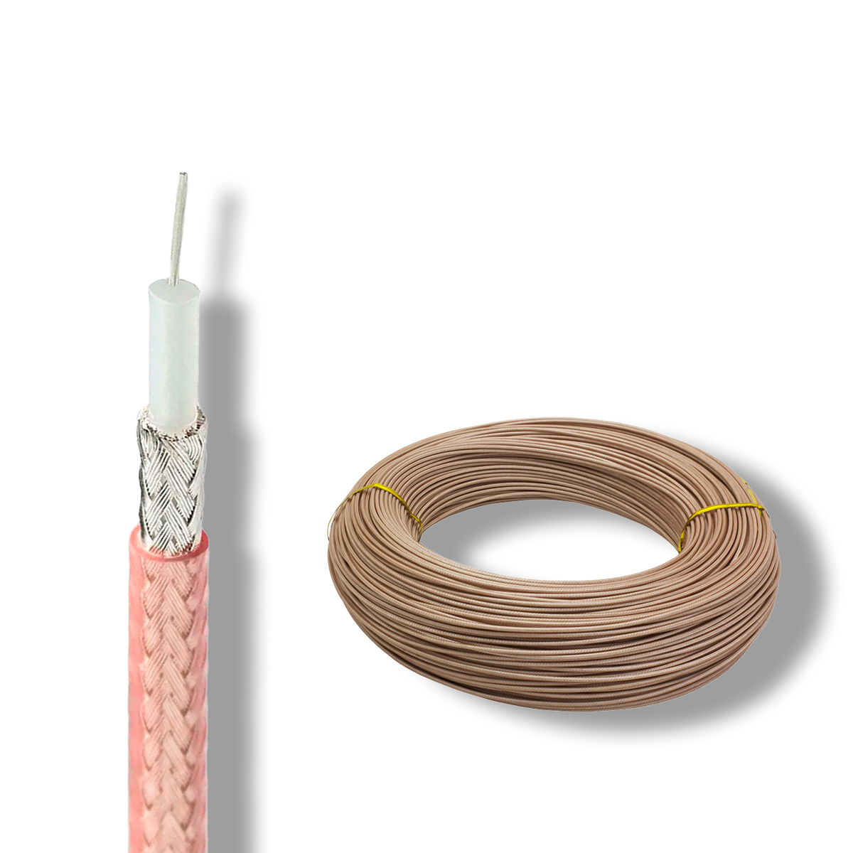 Зовнішня оболонка з FEP та діелектрик з PTFE дозволяють кабелю працювати при температурах до +200°C, що робить його незамінним у промислових, авіаційних та військових системах.