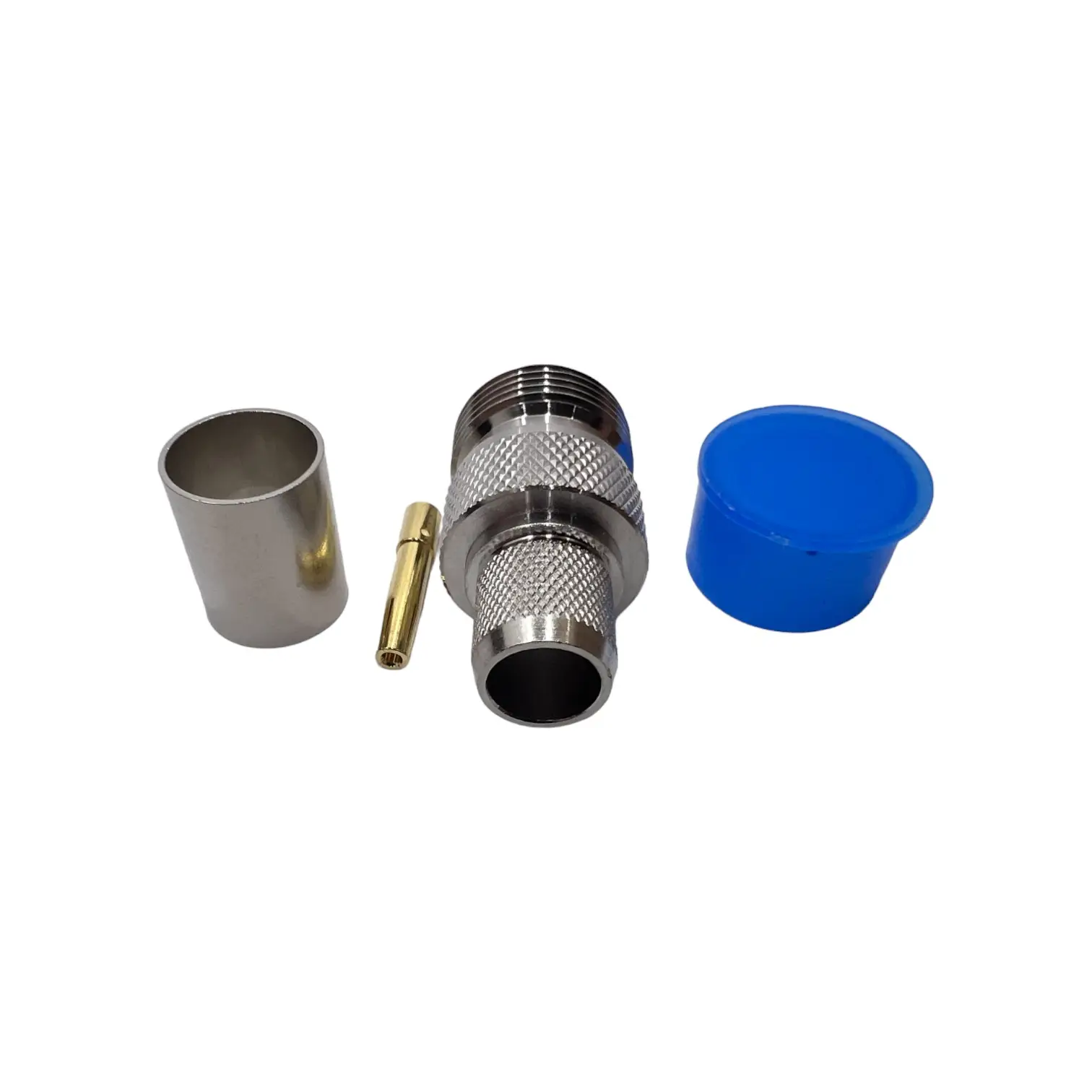 Роз’єм N Type female 8 crimp — коаксіальний ВЧ-роз’єм під обжим для монтажу на кабель відповідного діаметра. Призначений для використання в антенних системах, фідерних лініях та радіочастотному обладнанні. Забезпечує надійний електричний контакт і мінімальні втрати сигналу на високих частотах. Обжимний тип кріплення гарантує міцне та довговічне з’єднання. Розрахований на хвильовий опір 50 Ом.