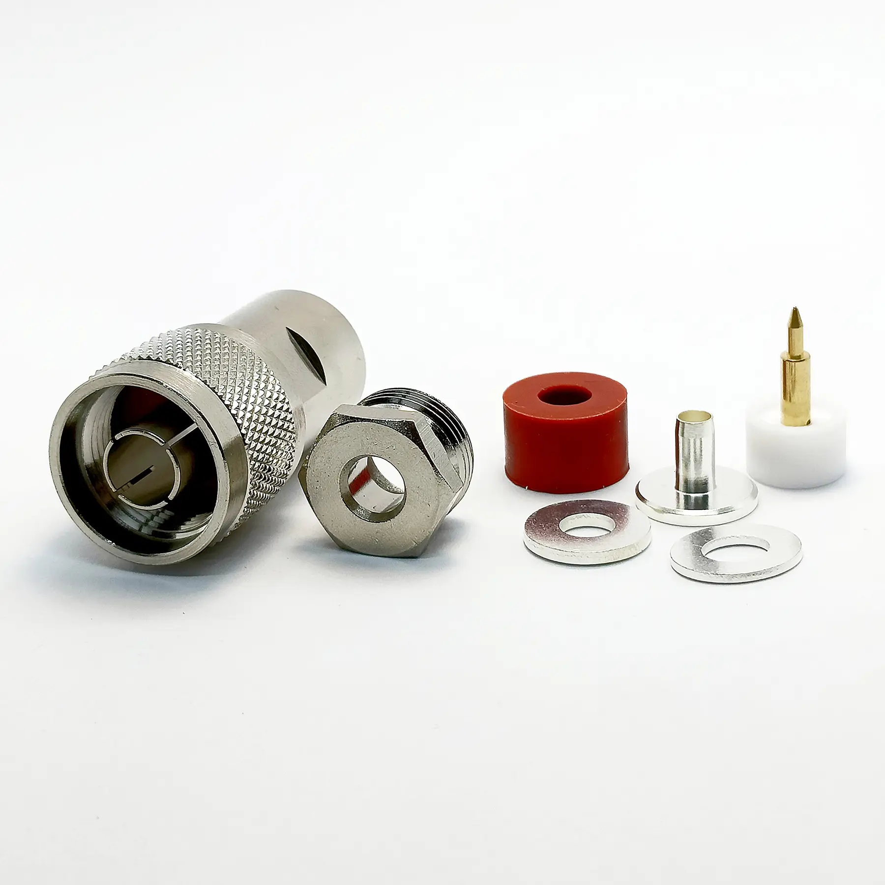 Роз’єм N Type male 6 clamp — коаксіальний ВЧ-роз’єм із затискним (clamp) типом монтажу для кабелю відповідного діаметра. Використовується в антенних системах, радіочастотному та телекомунікаційному обладнанні. Забезпечує надійний механічний контакт і стабільну передачу сигналу з мінімальними втратами. Затискна конструкція дозволяє виконувати монтаж без спеціального обжимного інструменту. Розрахований на хвильовий опір 50 Ом.