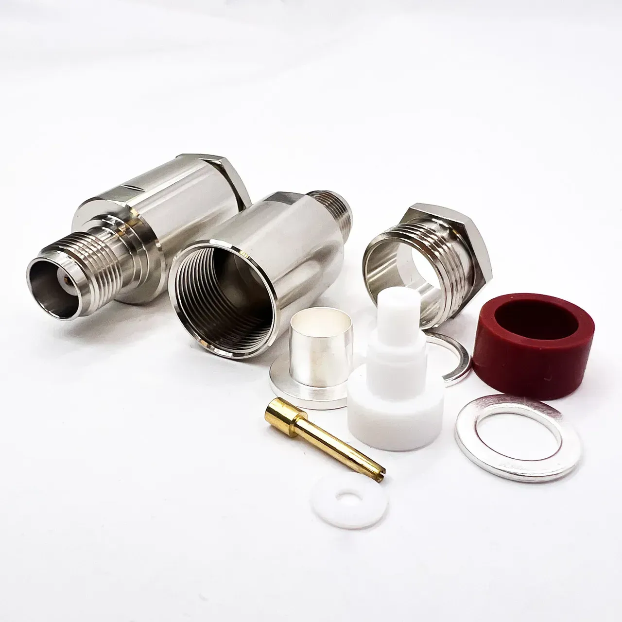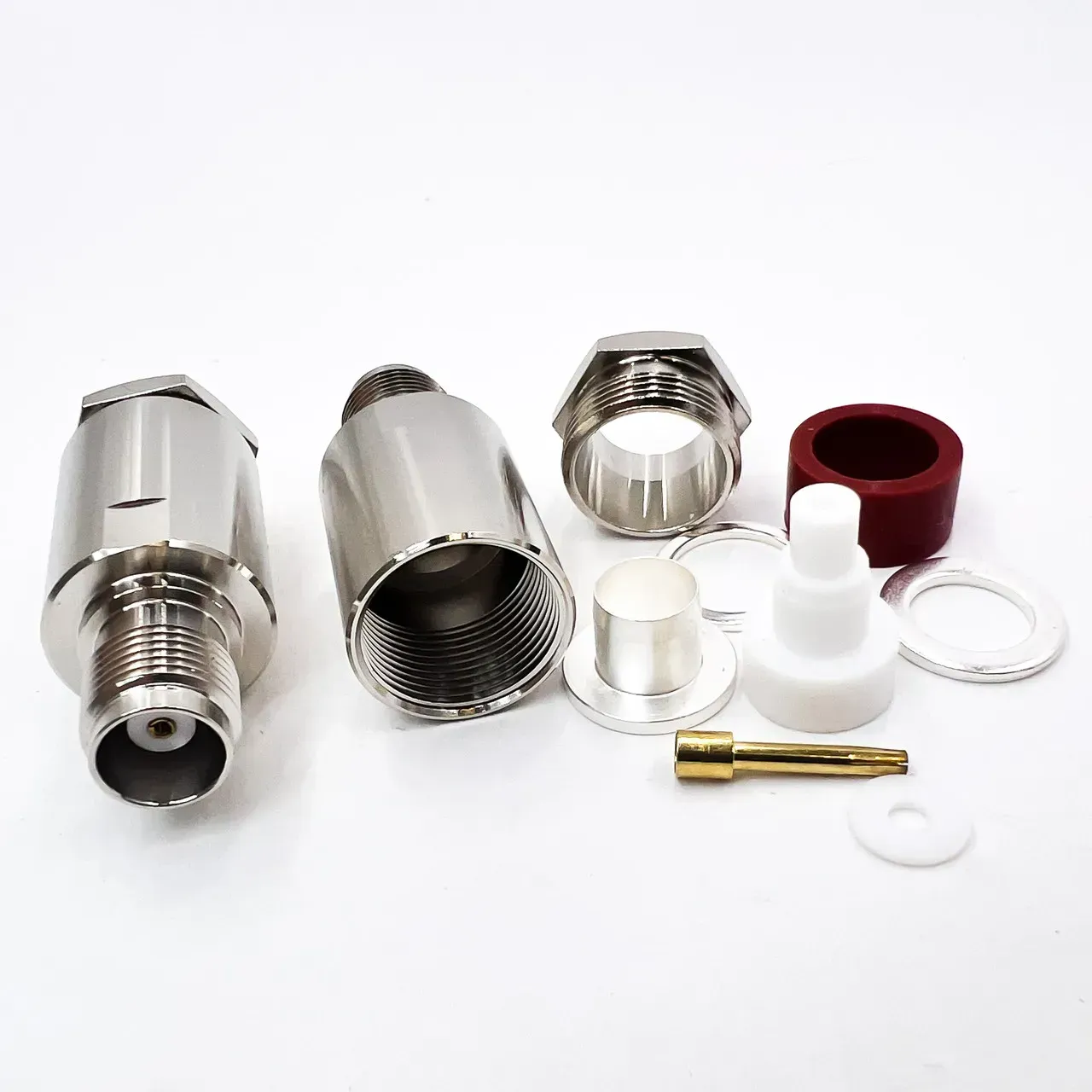 Роз'єм TNC female 10 clamp призначений для надійного з'єднання коаксіальних кабелів у радіочастотних системах. Завдяки затискному механізму він забезпечує стабільний контакт без необхідності пайки, що робить його зручним для швидкого монтажу.