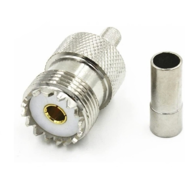Роз’єм UHF female 6 crimp — коаксіальний ВЧ-роз’єм під обжим для монтажу на кабель відповідного діаметра. Використовується в антенних системах, радіостанціях і фідерних лініях. Забезпечує надійний електричний контакт та стабільну передачу сигналу з мінімальними втратами. Обжимний тип кріплення гарантує міцне та довговічне з’єднання. Підходить для систем із хвильовим опором 50 Ом.